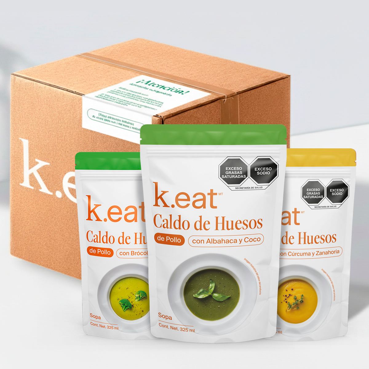 - Los Kaldos k.eat vienen en bolsas individuales de 325 ml (una porción). *Asegúrate de tener espacio en tu congelador para guardarlos cuando los recibas.