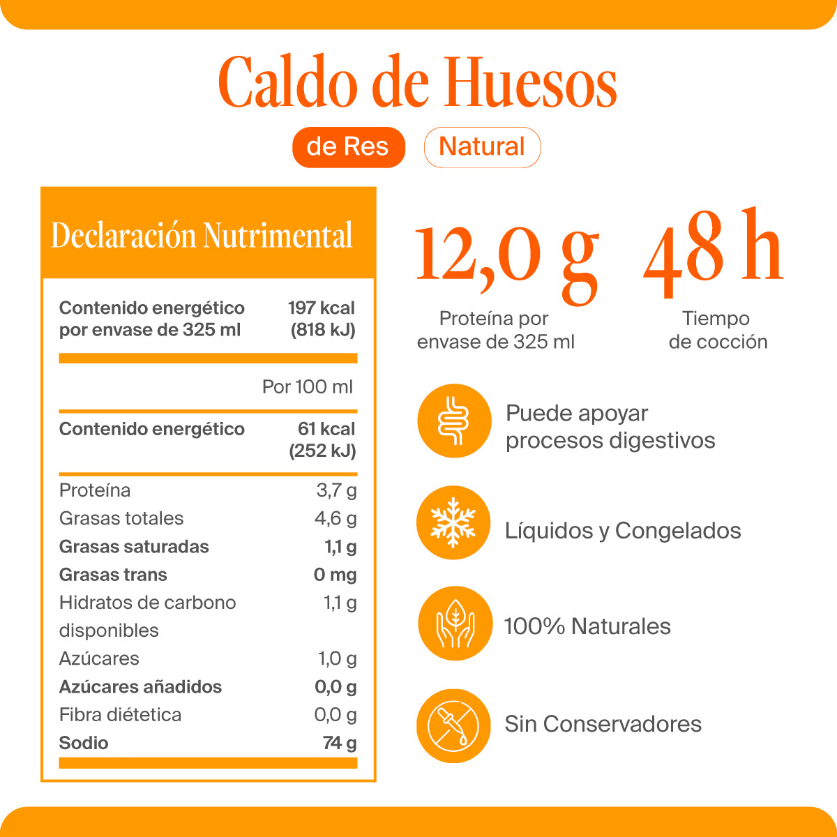 Cada caldo viene en una bolsa individual de 325 ml, ¡perfecto para una porción! Así que asegúrate de hacer espacio en tu congelador antes de que lleguen.